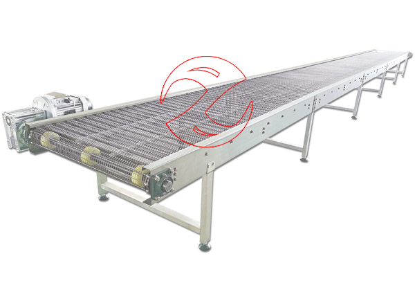 網帶輸送機以金屬絲編織輸送帶為載體,在一定的線路上連續輸送物料的機械,常輸送塊狀、顆粒狀與整件物料的水平傾斜轉彎方向的輸送,網帶食品輸送機具有網孔,且網孔的大小可按需要選擇,食品輸送機網帶的長度可任意選定。網帶輸送機可按需加工成提升輸送機、轉彎輸送機、環形輸送機等網帶輸送線。